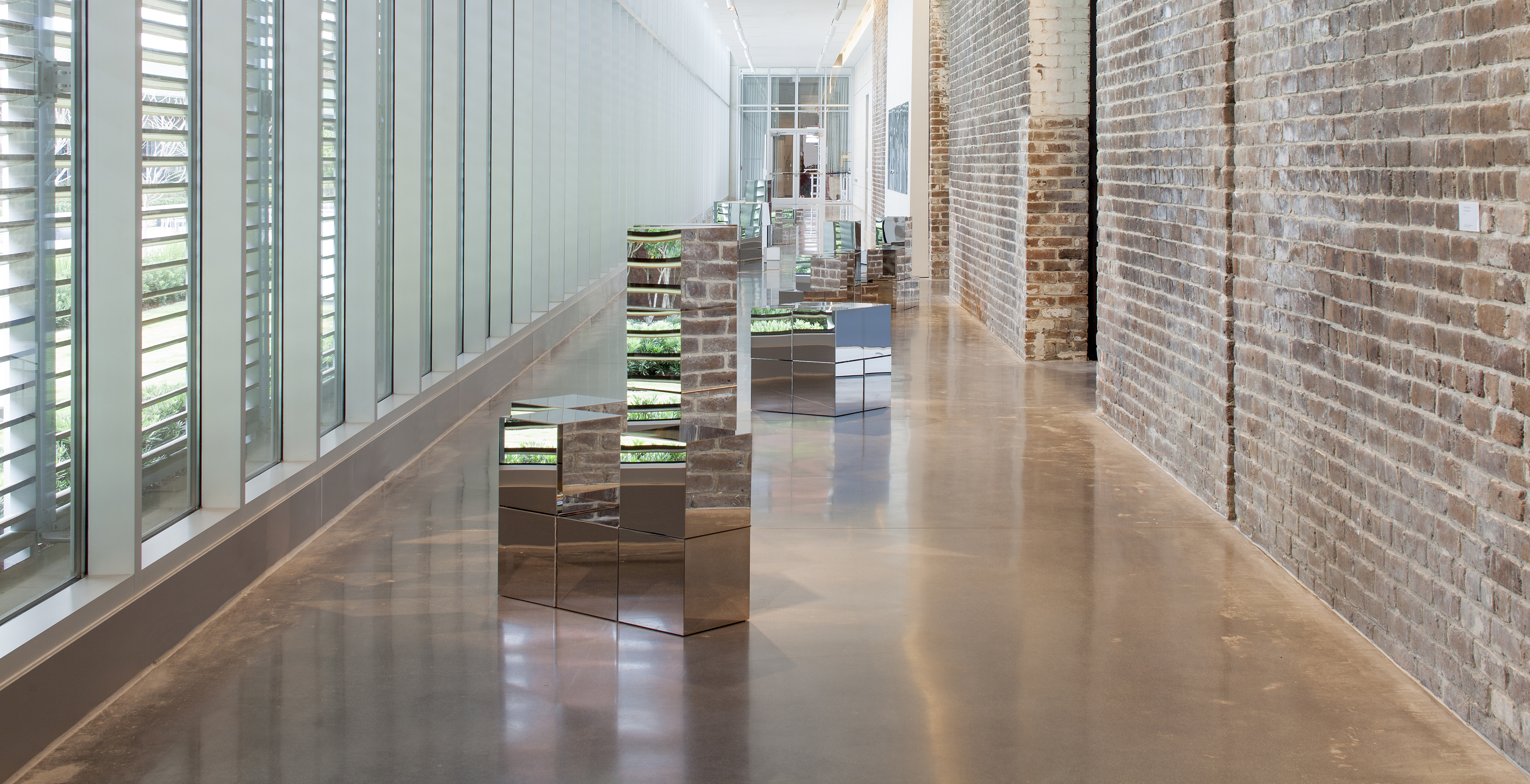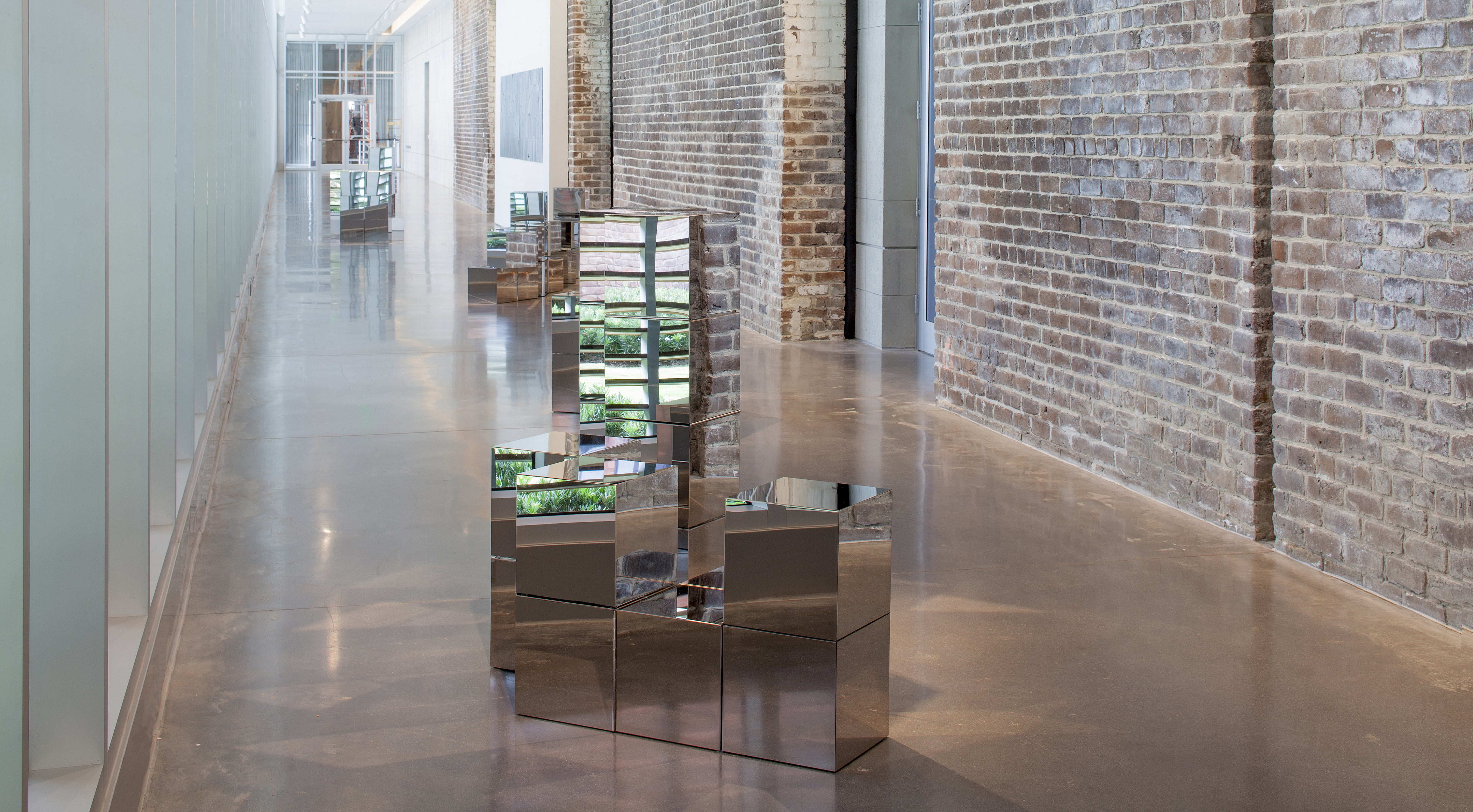 Multimedia artist Damián Ortega’s Belo Horizonte Project, was featured in its entirety for the first time at the SCAD Museum of Art. Inspired by the Brazilian city of Belo Horizonte’s commitment to the marriage of urban and environmental conditions, this installation of highly polished stainless steel cubes references urban architecture’s ability to reflect and be reflective of the surrounding environment in which it is situated. Based in Mexico City and Berlin, Ortega is most well-known for his ability to breach assumptions of common objects and structures while simultaneously working with their inherent material properties.
