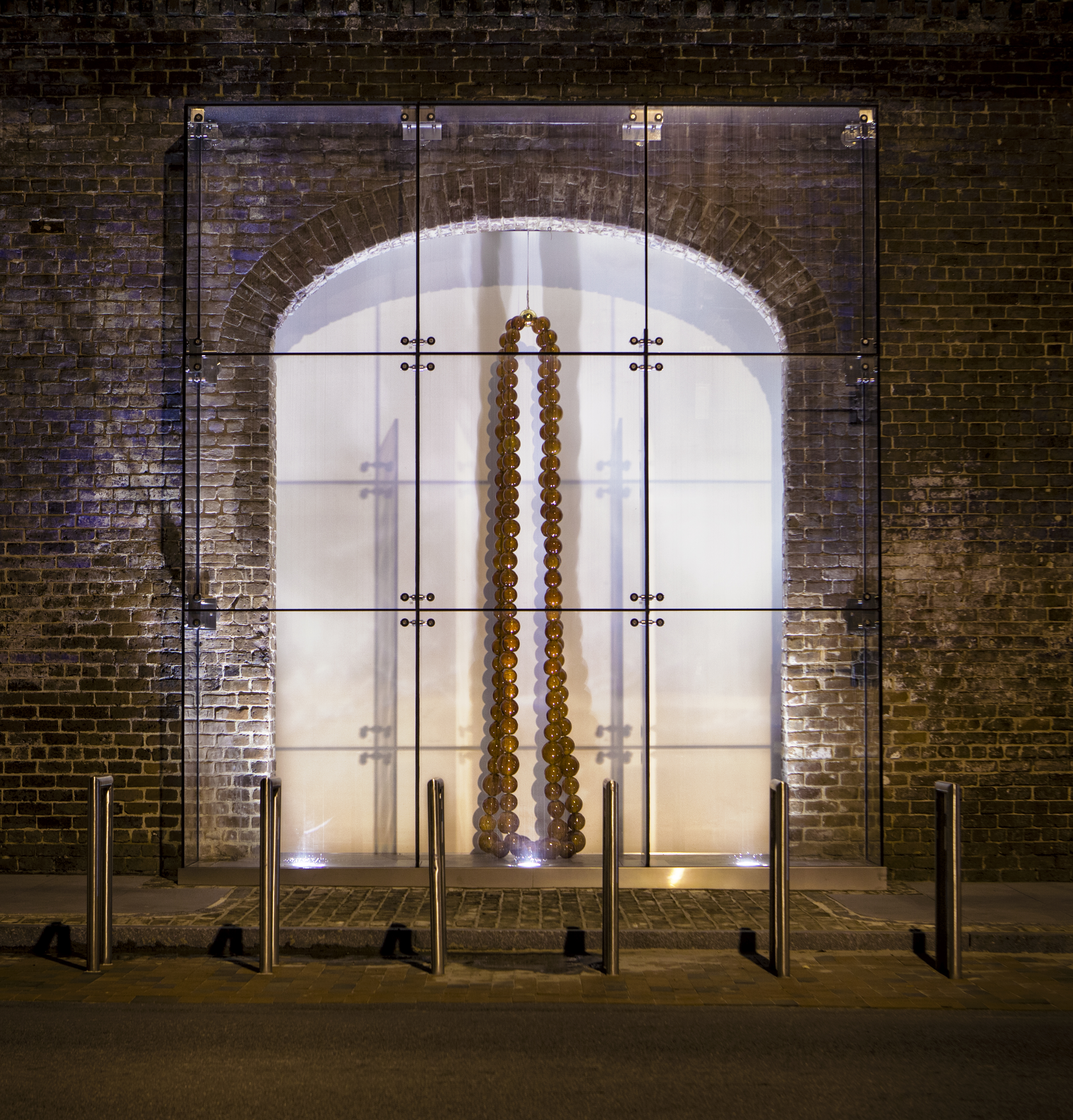 OTHONIEL was a presentation of iconic large-scale steel and glass sculptures by prominent contemporary French artist Jean-Michel Othoniel. Befittingly selected for the Jewel Boxes of the SCAD Museum of Art, Othoniel’s fluid forms and lustrous surfaces resemble objects of adornment that dually reference the opulence of Italian Baroque and the elegance of American Minimalism. The exhibition also featured Precious Stonewall (2013), a new work from Othoniel’s most recent series that is inspired by brick-lined streets in India and shaped to resemble hand-cut jewels in the artist’s signature style.