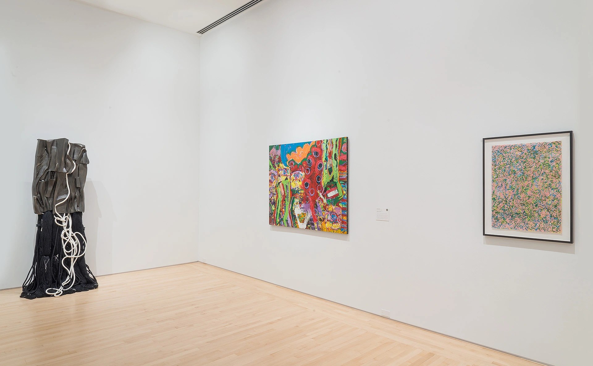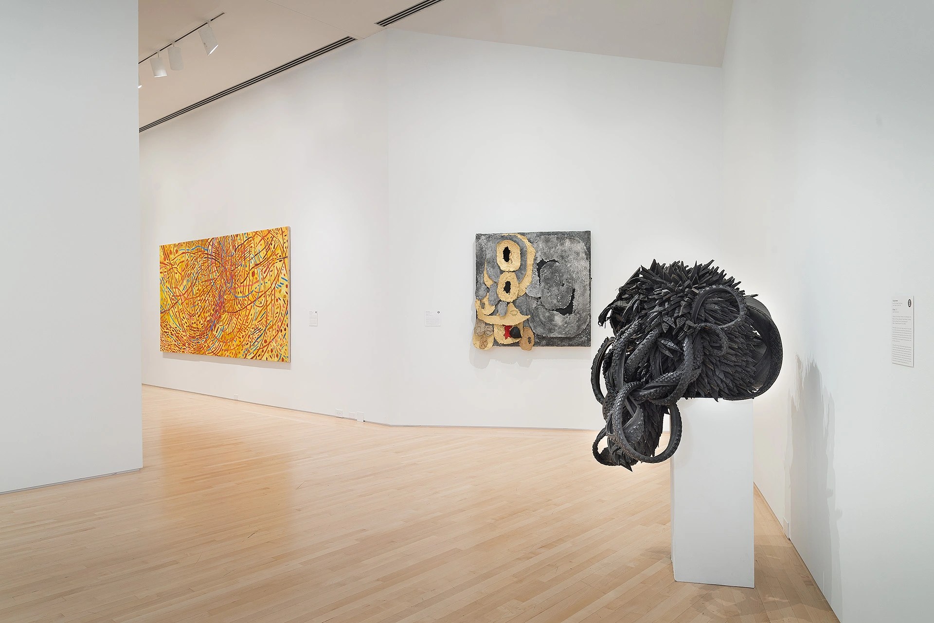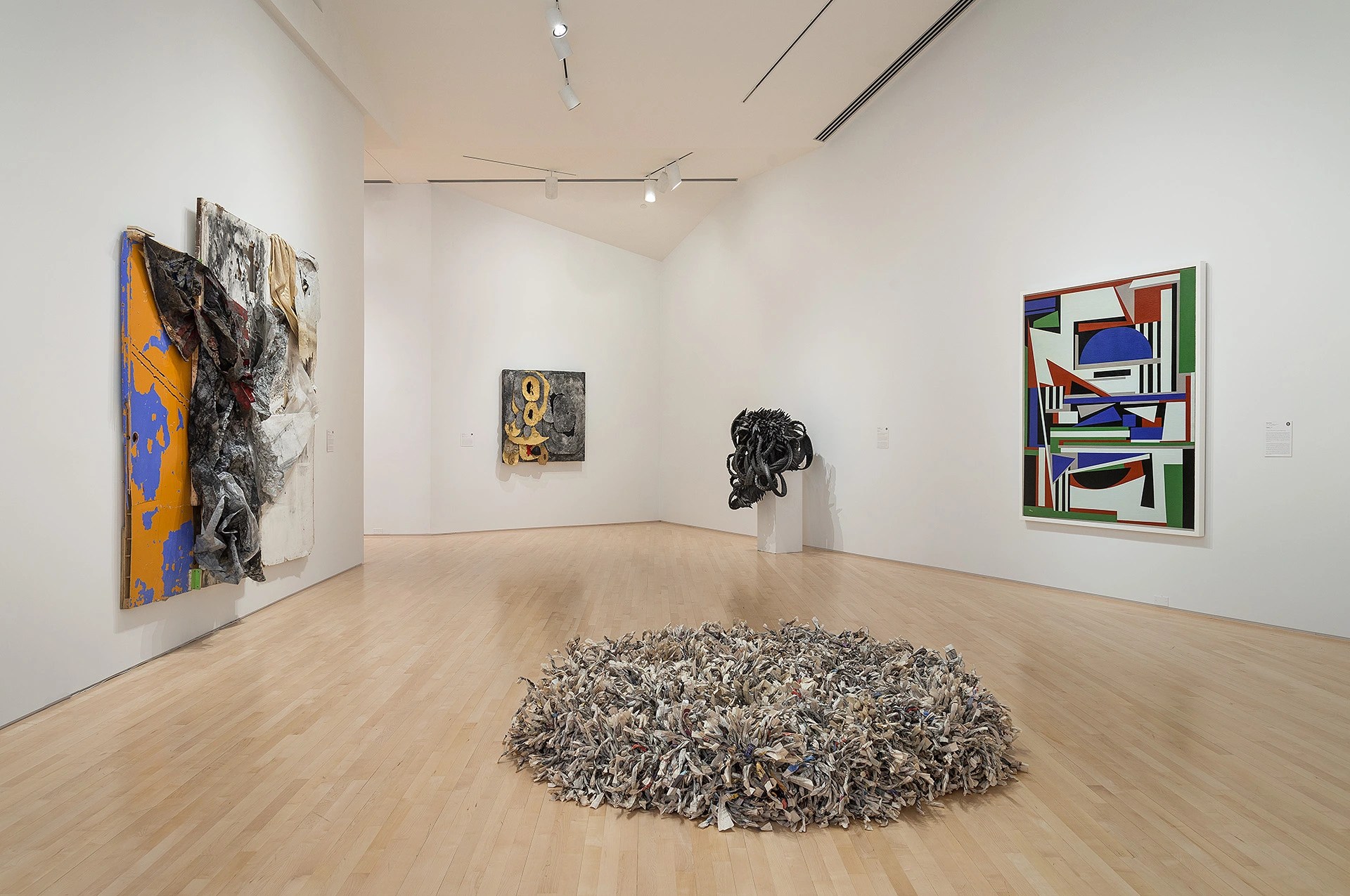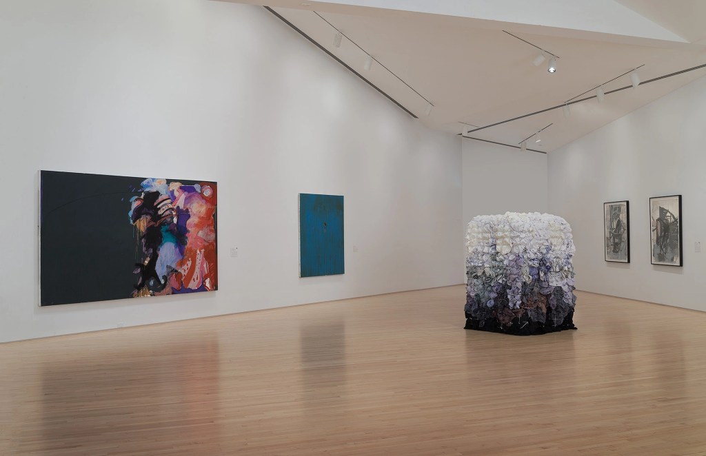 Pioneering artist and curator Howardena Pindell poignantly wrote, “We must evolve a new language which empowers us and does not cause us to participate in our own disenfranchisement.” This exhibition proposed that perhaps non-representational abstraction can be that language. Pindell and fellow artists Alma Thomas, Mavis Pusey, Lilian Thomas Burwell, Evangeline “EJ” Montgomery, Mildred Thompson, Betty Blayton, Mary Lovelace O’Neal, Sylvia Snowden, and Barbara Chase-Riboud paved the way technically and conceptually, rigorously persevering alongside their male contemporaries for decades. Maren Hassinger, Candida Alvarez, Chakaia Booker, Nanette Carter, Deborah Dancy, and Gilda Snowden sustained the pursuit of abstraction against continued odds. More recently, Jennie C. Jones, Shinique Smith, Brenna Youngblood, Abigail DeVille, and Kianja Strobert have assumed the mantle of abstraction, shaping its future course. Like the bands of concentric reverberations pulsating in Mildred Thompson’s painting Magnetic Fields, each wave of artists delivers renewed energy to and broadens the scope of this most magnetic field of American abstraction.